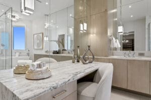 The comprehensive redesign spans every inch of the space, emphasizing sophisticated coastal living with a reimagined floorplan that maximizes views and natural light. Steven Anthony Luxury Homes collaborated with the owner on the transformation, which took more than two years to complete.