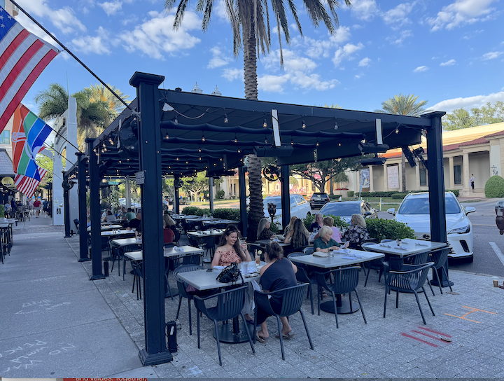 We’re running out of time to truly enjoy al fresco dining, so at 6 on Tuesday — with the temp at 80 and a light breeze — it was a no-brainer to eat on the sidewalk under the restaurant’s covered patio.