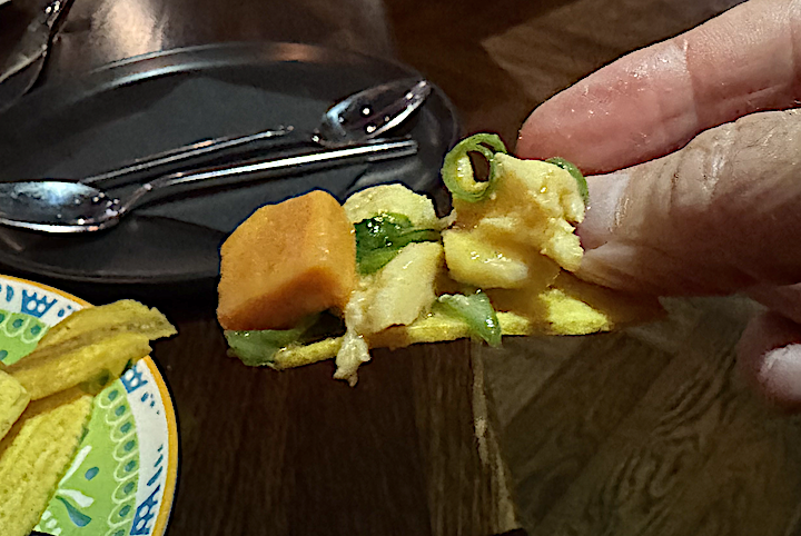 We piled the stuff on the chips and also ate it with a spoon. In all, the dish successfully packed together a complex, harmonious collection of flavors and textures.