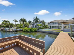 Step outside and the lifestyle truly comes to life. A resort-style pool, covered outdoor kitchen, cabana-style lounging, and lush, low-maintenance landscaping create a private oasis. The new dock with dual lifts invites effortless days on the water—whether boating, paddleboarding, or simply enjoying the frequent visits from dolphins and manatees.