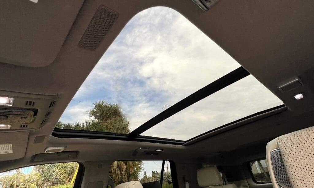 Inside there are three rows of seats with Barcalounger-like captain’s chairs in the second row, and an adult-sized third row. The load space with the third row folded is as big as a PODS storage unit.