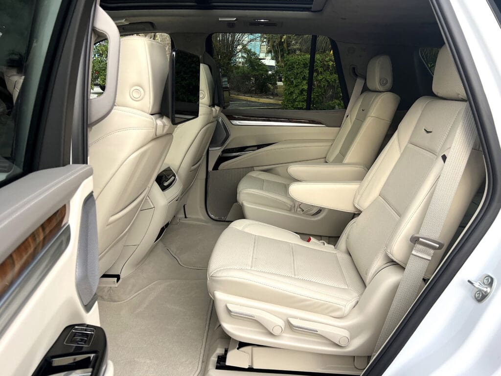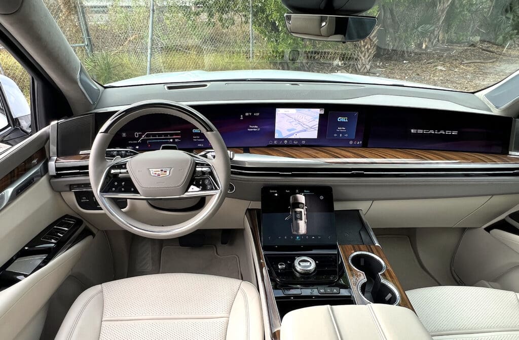 As always, the Escalade feels huge inside and impressively tall, especially rolling on optional 24-inch rims. Behind the wheel, you do feel like you’re driving a semi. Thankfully there are power-deploying running boards to ease the climb up into the cabin.