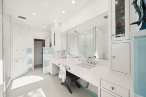 Upstairs, the primary suite is a peaceful retreat, offering beautiful golf course views and glowing sunrises over the Intracoastal. A custom walk-in closet, electric blinds, and spa-inspired bath with soaking tub, walk-in shower, and dual vanity complete the space. Additional bedrooms are equally inviting, each with its own unique view from tranquil pond scenes to pool and waterfront outlooks.