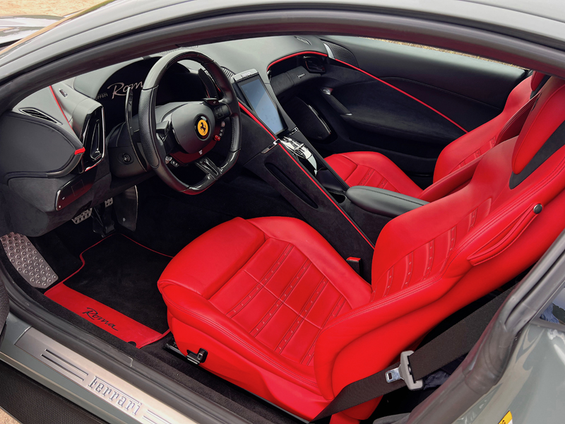 Select sport or race mode for the full fireworks when the Roma’s true supercar persona is revealed. Hearing the V8 as it screams towards the red zone, is aural magic.