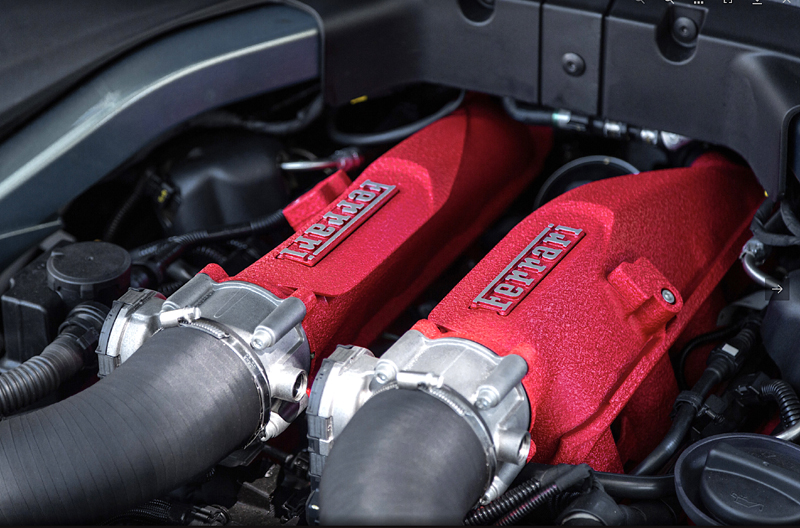 Mounted well back under that curvy hood for near-perfect weight balance is a twin-turbocharged 3.9-liter V8, packing an impressive 612-horseys and 561 torques, that loves to shriek to its 7,500 rpm redline. It’s one of the great Ferrari engines.