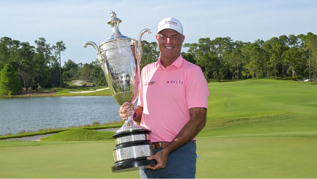 Meanwhile, in Bradenton, Florida, Stewart Cink pulled away from the field with an amazing stretch around the turn Sunday to close with a 9-under par 63 for a six-shot victory in the Senior PGA Championship, his first senior major and third win of the year on the PGA Tour Champions.