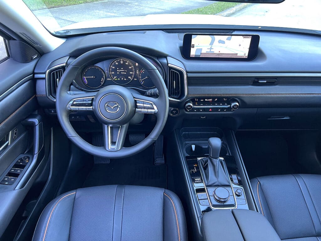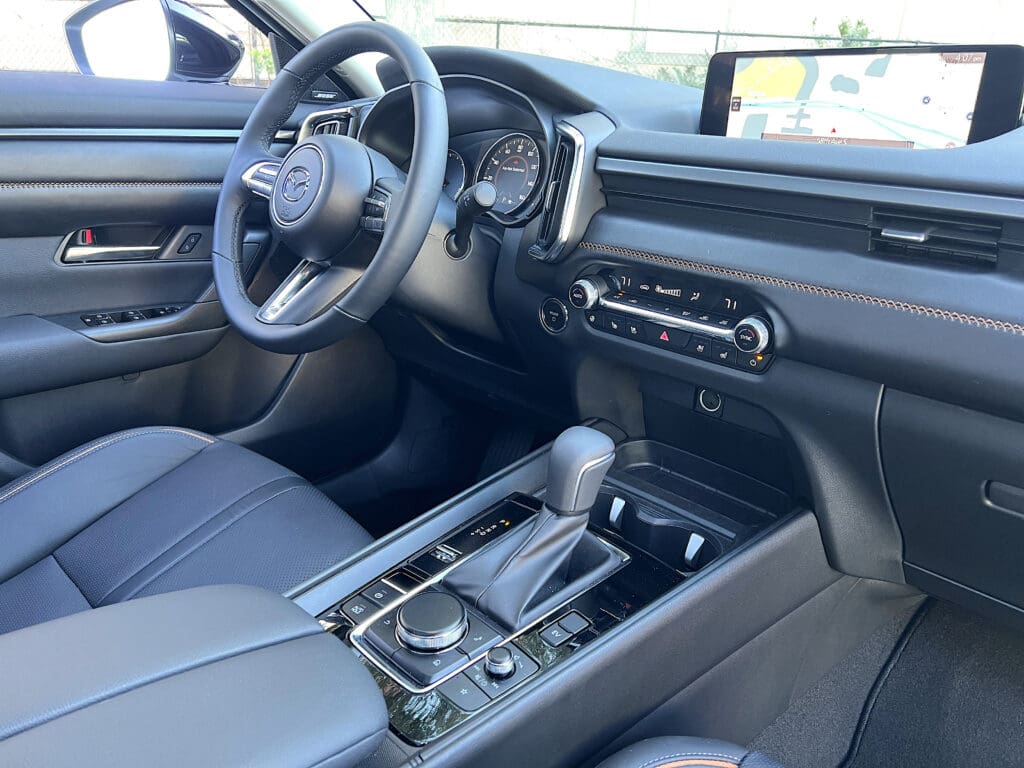 Yes, the Mazda’s 10-inch dash-top screen seems amusingly small in these times of 52-inch Mercedes EQS touchscreens. But I’ll forgive it for the lovely, crystal-clear, easy-to-read graphics.