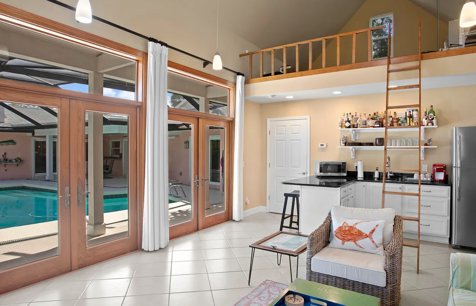 The detached private casita is a game-changer. With soaring ceilings, a loft, a kitchenette, and a full bathroom that doubles as the pool bath, this space is ideal for: