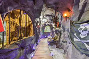 Inside, visitors move from a pirate-inspired passageway into a western-style saloon, then into retro automotive lounges, cinematic rooms, and immersive entertainment spaces. Each space layered with custom details, sound design, lighting, and handcrafted features. Every corner reveals something unexpected, inviting exploration and discovery throughout the home. No two rooms are alike, yet they flow together seamlessly, unified by a shared sense of creativity and narrative.