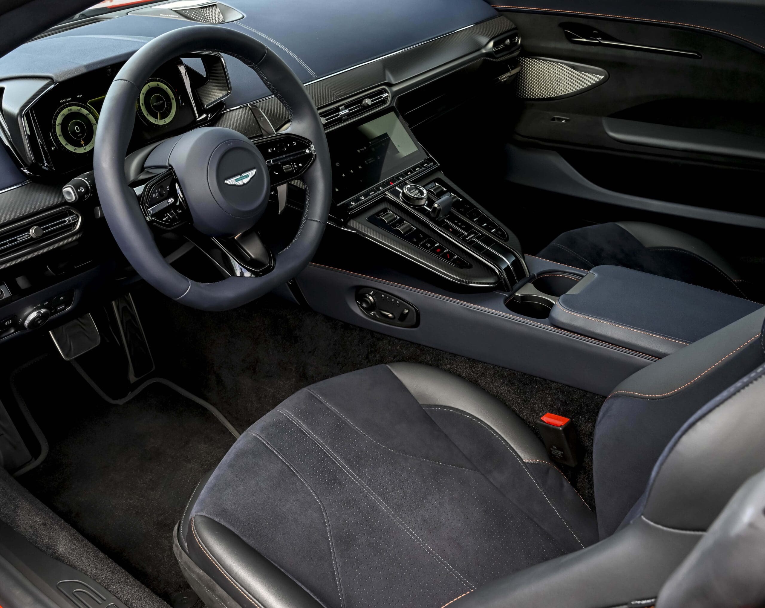 Taking its cues from the recently refettled DB12, it gets a 10.25-inch touchscreen display integrated in the center console, with Apple and Android connectivity. Gone too is the eccentric push-button gear selector, replaced with a more conventional, more intuitive, single-lever shifter.