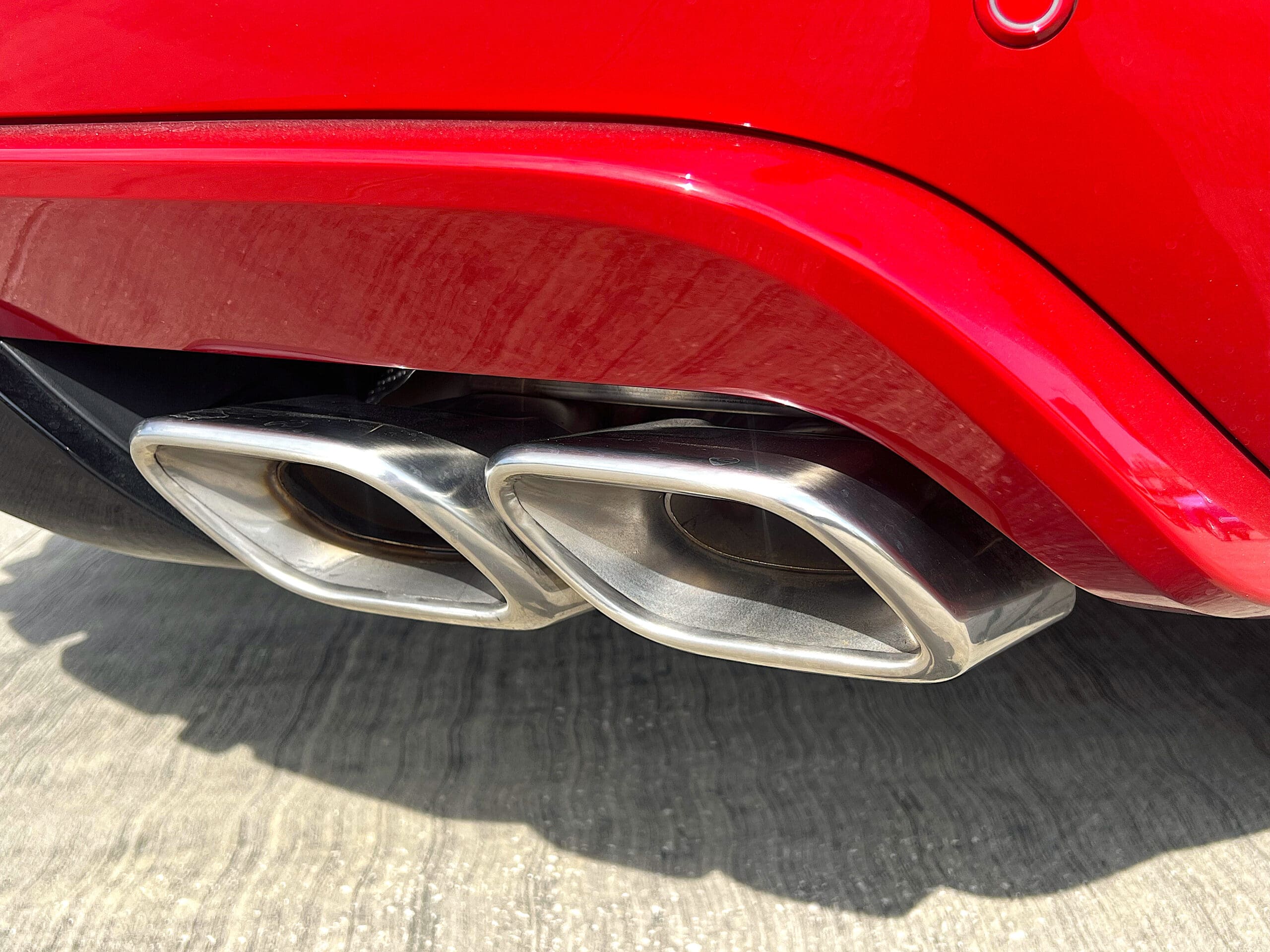 It’s not just looks that thrill. Under that massive clamshell hood lurks a nuclear reactor of a twin-turbocharged 4.4-liter V8 delivering a mighty 523 horsepower and stump-pulling 553 lb-ft of torque.